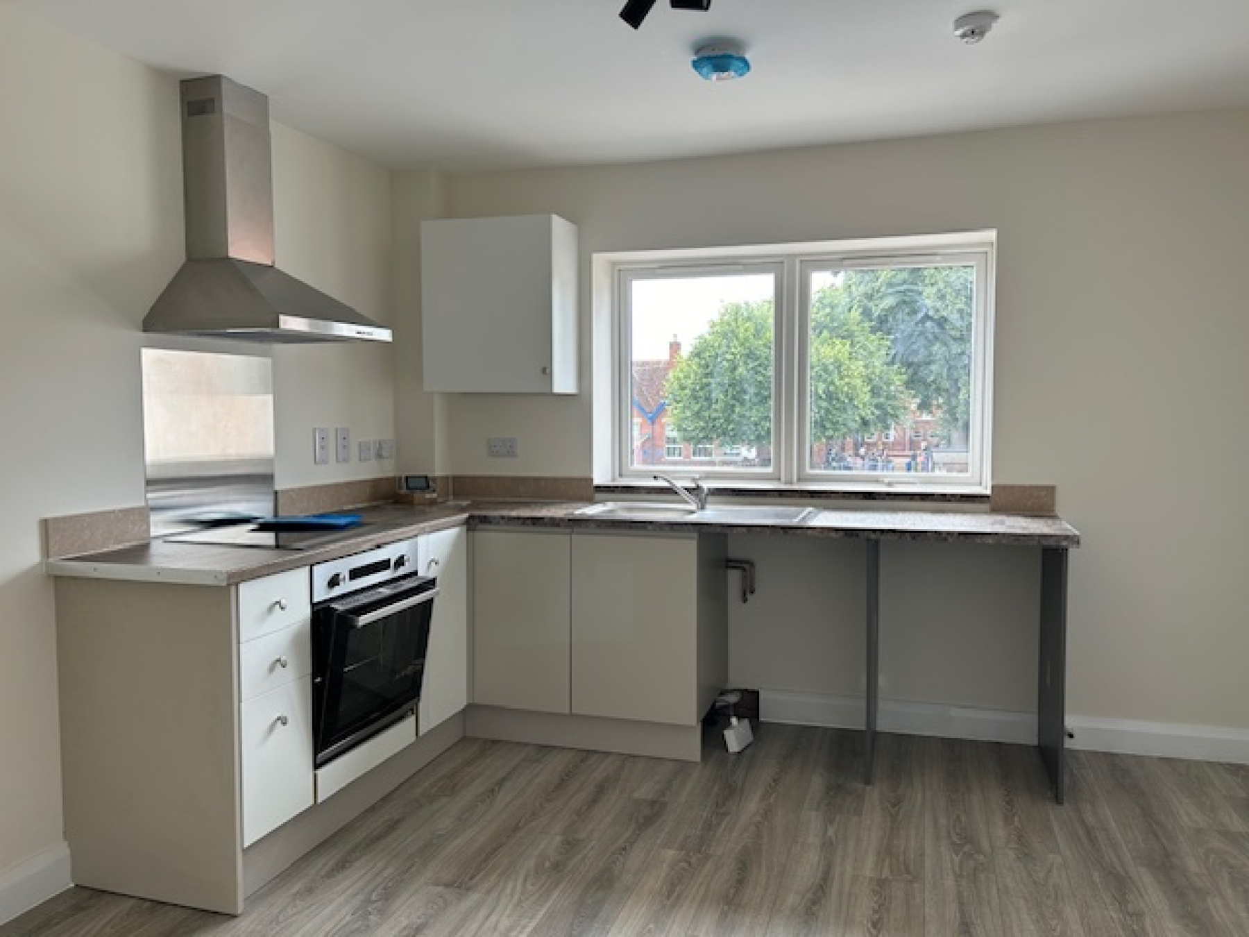 Open plan kitchen & living space - this is a fantastic, well fitted, light room overlooking the front of the property. It benefits from integrated electric oven and induction hob, under counter fridge and a space for a washing machine.