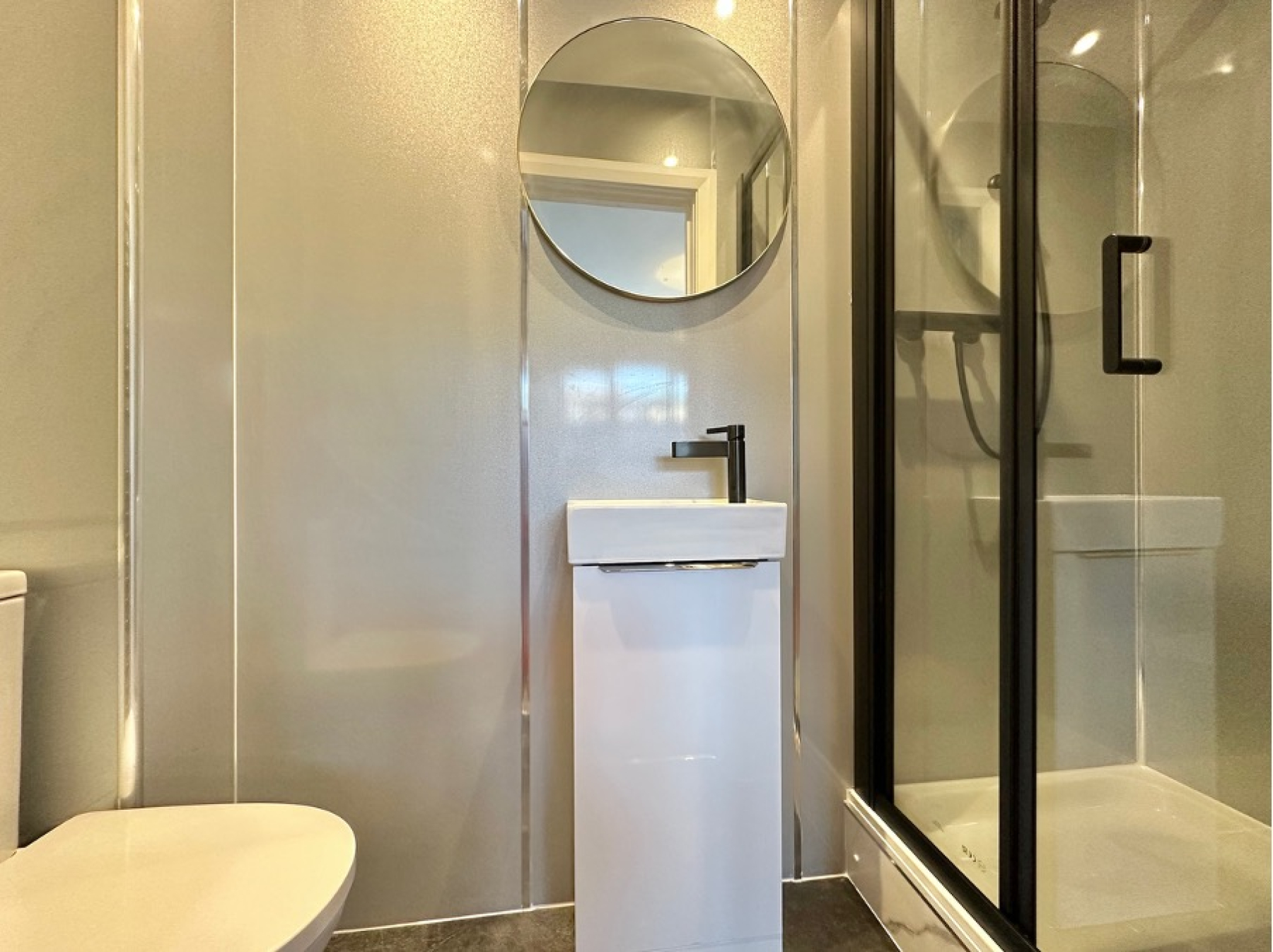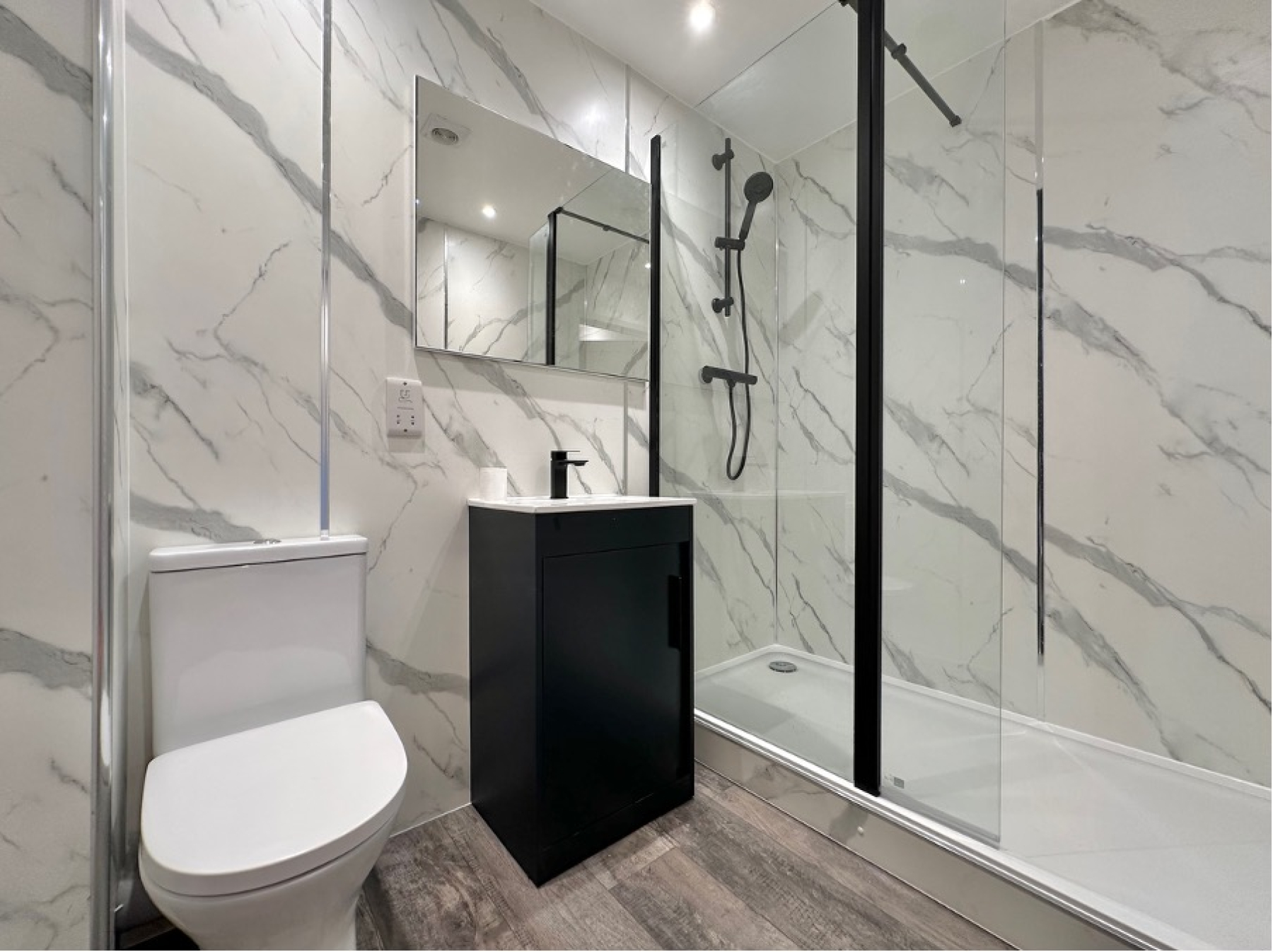 Shower room – fitted with a luxury feel and a large walk-in raindrop shower, vanity wash hand basin and WC