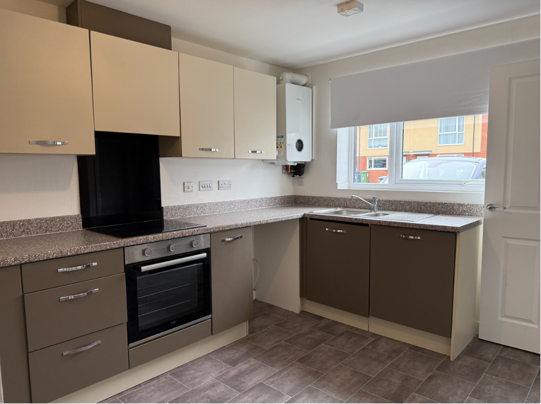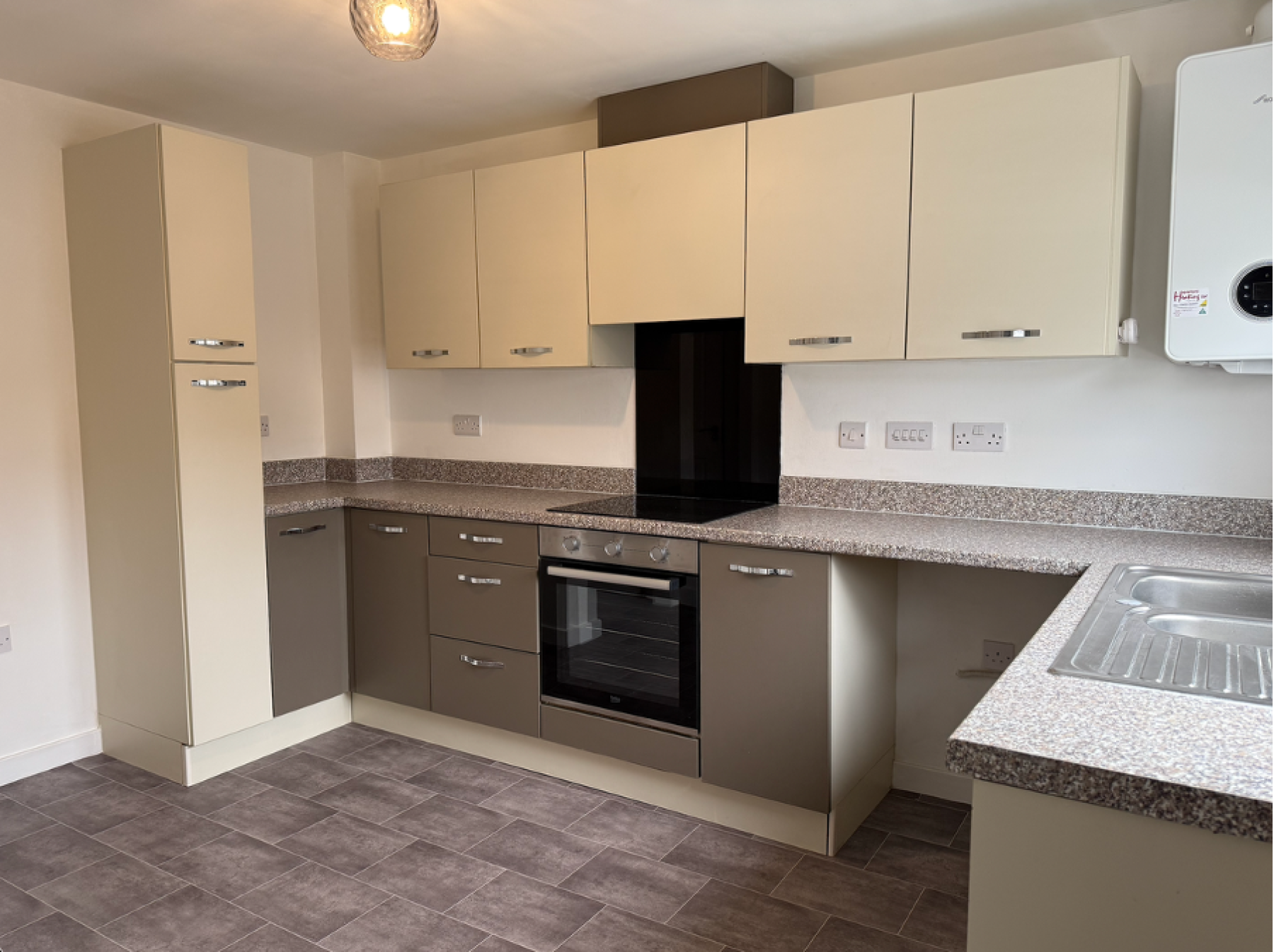 Kitchen - a well fitted kitchen with an integrated electric hob and oven. There are also spaces for a washing machine and fridge freezer.