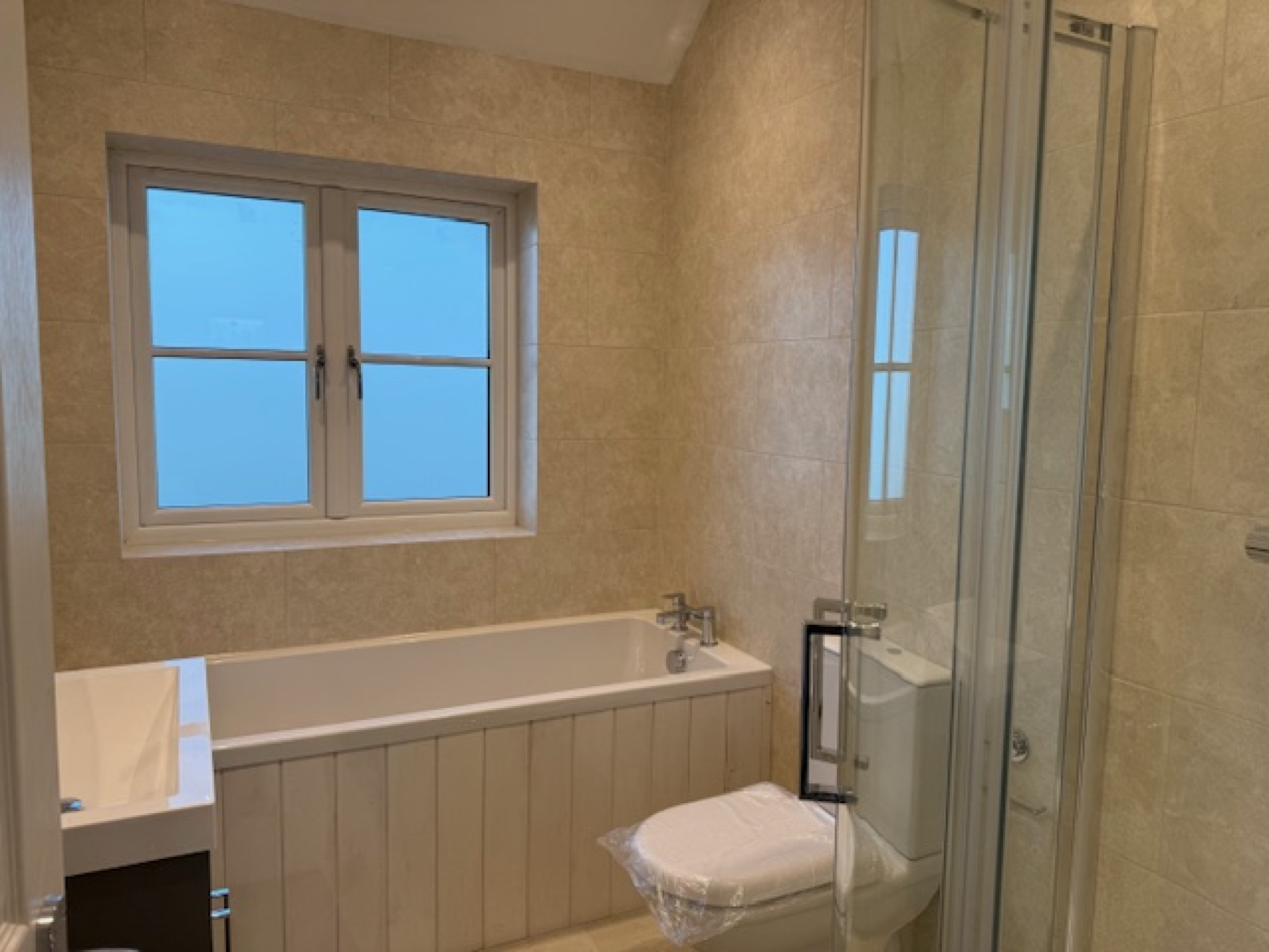 Family bathroom – a very well fitted bathroom with a bath and separate shower cubicle and a sink vanity unit.