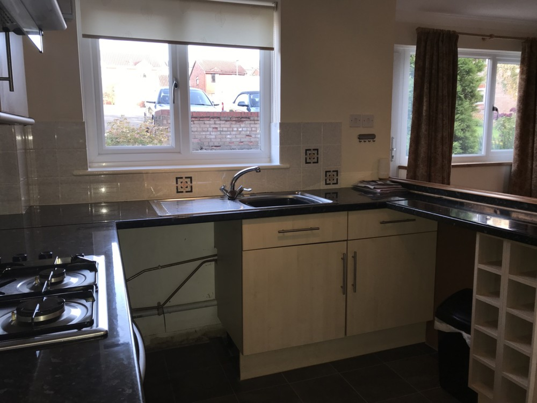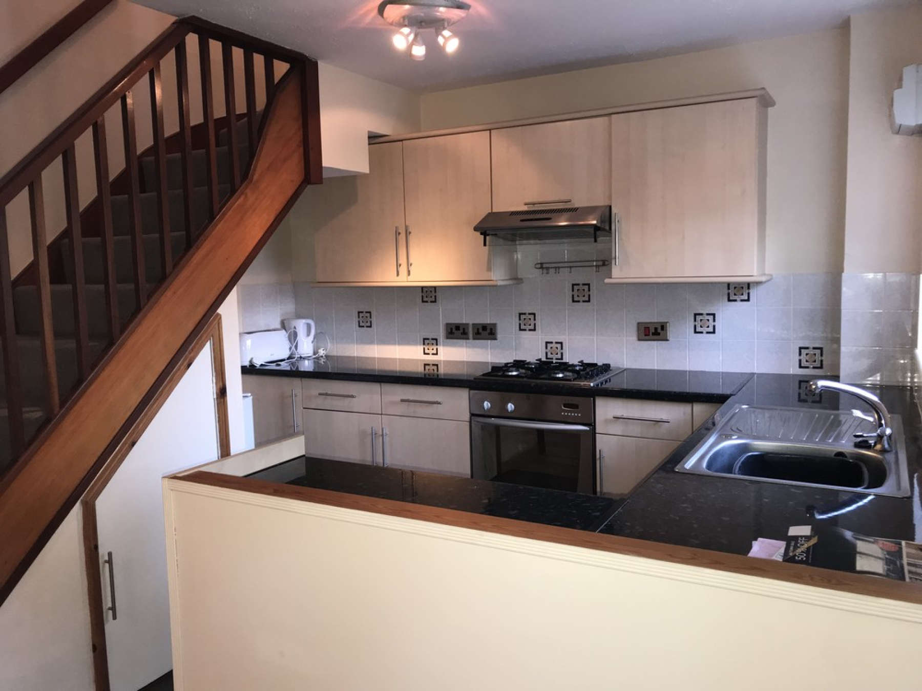 Kitchen area - well fitted with plenty of unit and worktop space. It is fitted with an integrated electric oven, gas hob and has space for a washing machine and an under counter fridge. There is an under stairs storage cupboard.