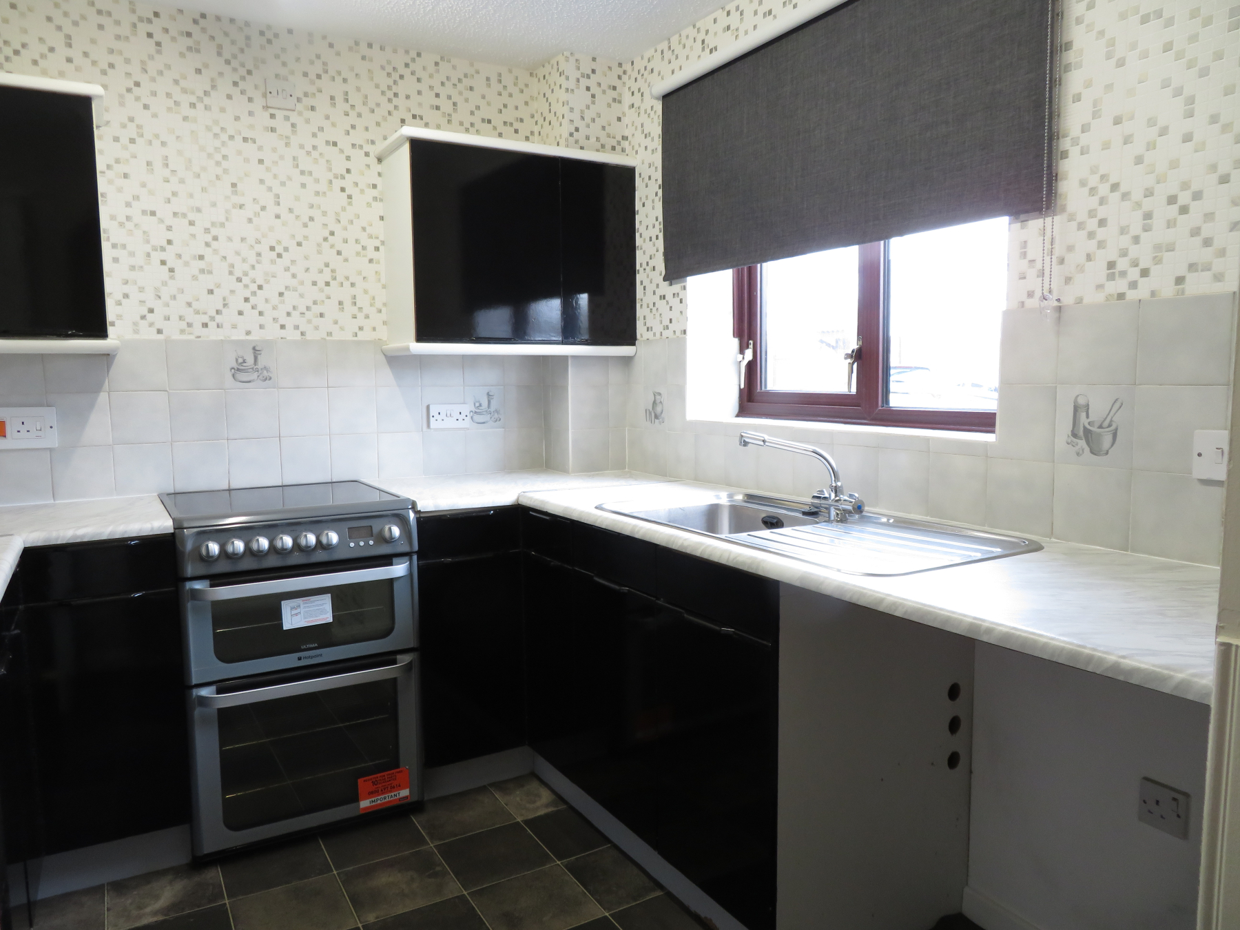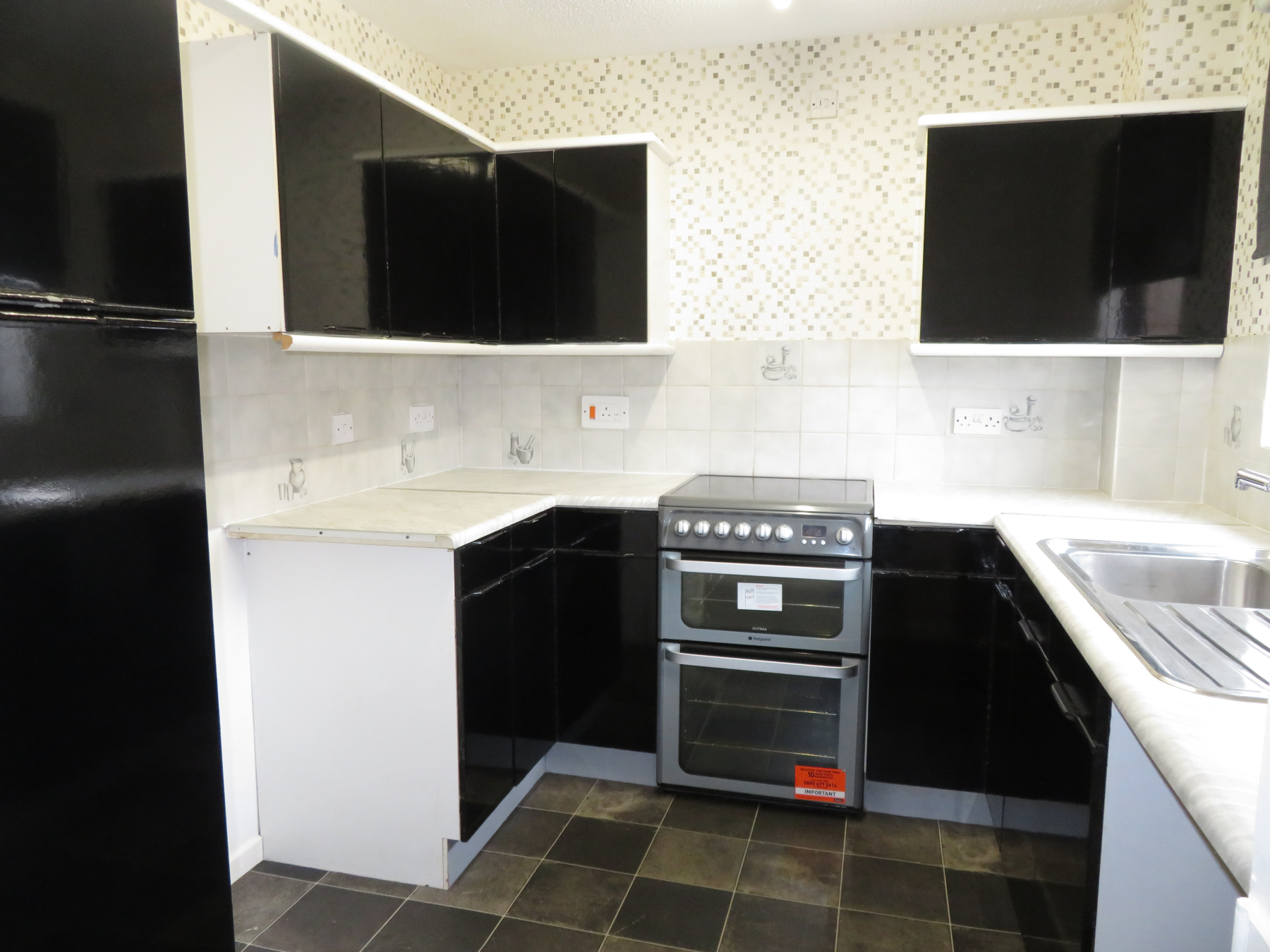 Kitchen – The kitchen has ample worktop space and overlooks the front garden. It has a freestanding cooker and spaces for a washing machine and fridge freezer. NOTE - The doors of the kitchen units will be changed before a new tenancy starts.